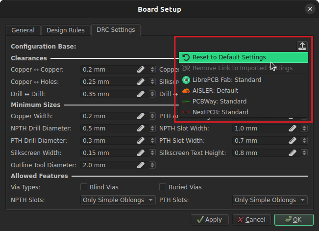 And this features goes even one step further. In addition to board design rules, it is also possible to share output jobs through this system. So instead of fiddling around with Gerber/Excellon file names in every new project, just load the predefined Gerber/Excellon settings for your PCB manufacturer in a second!