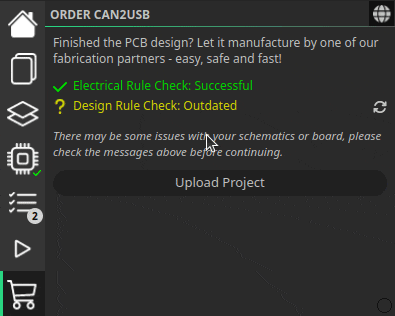 It now automatically checks the ERC and DRC and warns about outdated DRC messages before you place the order. The days are gone when we ordered faulty PCBs because we forgot to run the DRC!